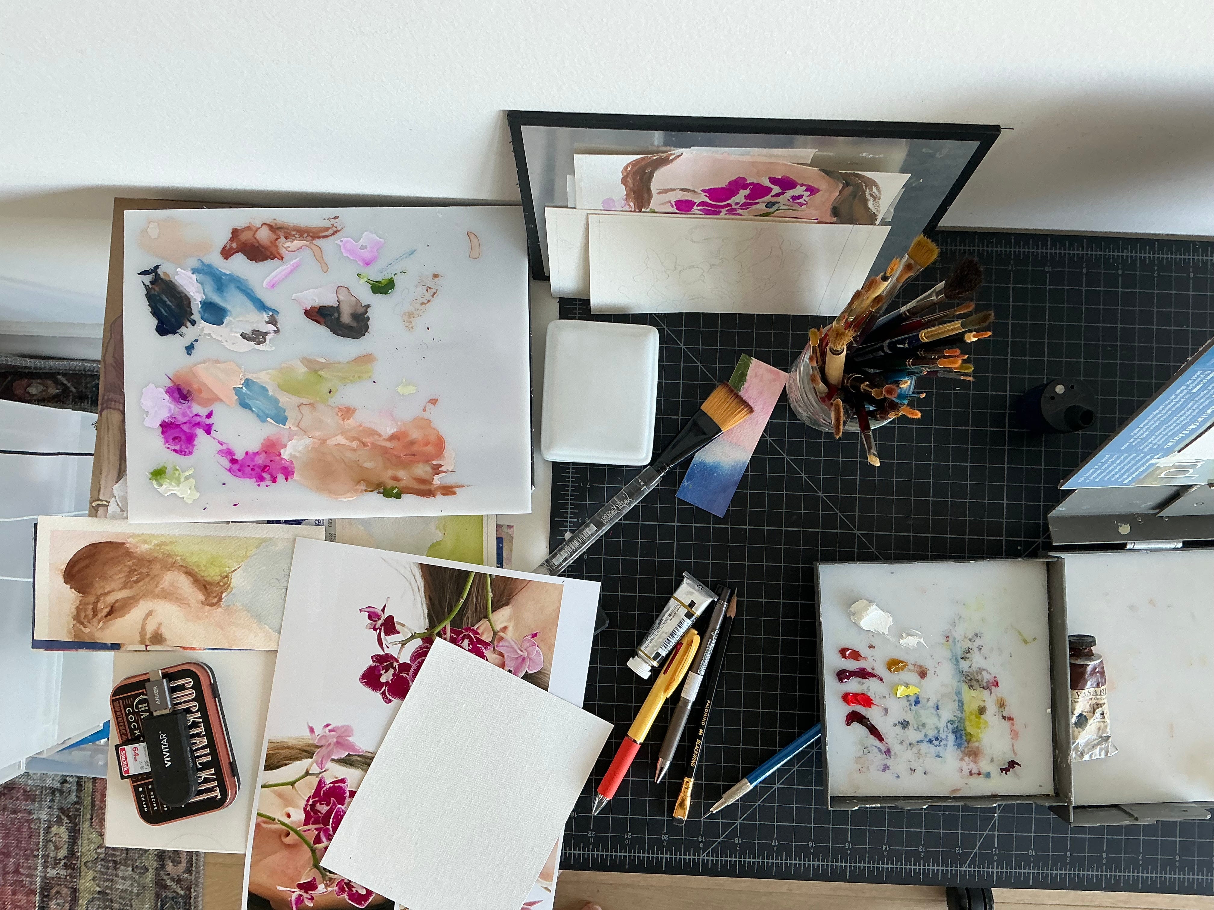 Earlier in the week I came up with an idea of “see flower, hear flower, speak flower” and made some reference images for the Brassworks postcard show. I started painting in gouache and am not loving the limitations of the medium. I squeezed out some oil paint to use and that is when I heard from the vet that they could fit Cece in. That paint has sat untouched, drying out since Tuesday morning. This week I’m not up for much of anything. This morning it sounds nice to pick up a paint brush and push paint around without feeling a need for outcomes. I think that is a good sign. I started listening to the book “How to do Nothing” by Jenny Odell a couple of weeks ago but haven’t been listening this past week and my brain is such a mess I don’t really remember most of what I’ve listened to. It is about the attention economy and how to fight to reclaim one’s own mind space and have time outside of capitalism’s drive for all to be efficient, productive and product-ized. For me making a mess pushing around paint without the need for it to become something, to be like a kid and get dirty in the sandbox wasting material and time is a relieving balm. The wasting part does stress me out some but how could giving my mind moments of peace be a waste?