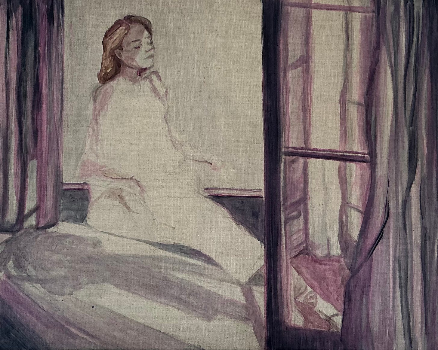 Inspired by Edvard Munch’s Starry Night I decided to experiment with a favorite of his, painting with essence. Essence is basically oil paint thinned dramatically with paint thinner. I’m using Gamblins Gamsol to thin my paint here. I love the watercolor like effect of essence but I also love thick paint so i’ll keep playing and see where this painting ends up.