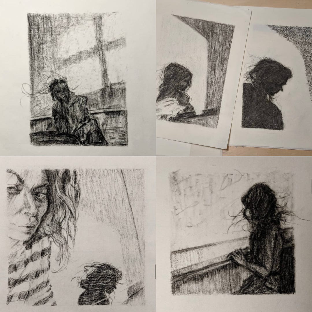 Back in 2016 I made a painting “Split” that started me thinking about creating a Shadow and Light series. For a number of reasons including multiple housing moves, constrained spaces, and other reasons it wasn’t until 2023 that I began making the paintings. While i was sorting ref images and making sketches for the series I had a thought that the culmination of the project would be compiled into a book. Now that I have acquired an affinity publisher license I spent a bulk of time this past week learning how to set up a document and use the program, gathering and attempting to organize book content, and looking at Mixam (an online printer) printing options. I had taken a bit of a break from the series because it was feeling more like a chore, or overwhelming, than play. I argue the best work needs some structure and skill but the always comes when one is playing and having a good old time! Now I am excited to get back to it and see what happens with the series and the book as I work on content, the book layout, and having fun in the process!